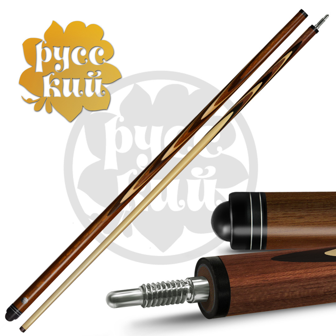 Кий «РУССКИЙ» - правильный кий, которому можно доверить свою игру. Бренд «РУССКИЙ» уже более 8 лет на рынке, за этот срок он собрал массу положительных откликов не только от покупателей-любителей, но и профессиональных именитых спортсменов! Постоянно расширяя линейку и улучшая качество своей продукции, сегодня мы представляем обновленные модели, соответствующие «золотому стандарту» киестроения! Запиленные новым способом кии «РУССКИЙ» обладают высокими пружинящими свойствами, одновременно плотные и стабильные, они имеют идеальную геометрию. В киях «РУССКИЙ» запил стал тоньше и длиннее, увеличенные лепестки придают большую жесткость кию и уменьшают вибрацию при ударе. Такой длинный запил сложен в реализации, зато обеспечивает хорошую плотность игровому инструменту. Длинна запила в среднем у склеенной заготовки составляет 33 см, а в готовом изделии 26 см. Запилы цельные, не склеенные, что тоже работает на повышение плотности и стабильности кия. Тонкие заготовки без склейки из разноцветных пород дерева собираются четко один к одному, образуя ажурный рисунок. Эффектные узоры не только придают изящный вид, но и совершенствуют игровые характеристики кия. Новая структура кия абсолютно монолитна и приближена к естественной структуре дерева. В изготовлении шафта киев используется только высококачественный 4-х сторонний граб. Это жесткое по структуре дерево, идеально подходящее для ударной части кия по своим физическим свойствам. От шафта зависит качество игры, здесь аккумулируется энергия, позволяющая при ударе «выстрелить» шар. Геометрия шафта кия «РУССКИЙ» кроме идеальной прямолинейности имеет определенную заданную жесткость. Здесь соблюден важный баланс между «жесткостью» и «эластичностью». В киях «РУССКИЙ» обновлены замки, сейчас они сделаны из двух видов металла, что способствует меньшему износу и большему сроку службы изделия. Разные металлы используются намеренно, разность в твердости обусловлена технической особенностью киестроения. Надежный замок гарантирует прочное соединение ударного наконечника и шафта, плотное соединение в месте стыка, обеспечивая идеальную скрутку и монолитность инструмента при игре. Финишная обработка этих киев тоже вобрала в себя все самые лучшие традиции. «РУССКИЙ» полируется особым способом и специальным составом, который наносится в несколько этапов и слоев. Поверхность дорабатывается до зеркального блеска, при этом кий не скользит в руке. Покрытие кия прочно и долговечно, а кий надежно защищен. Все модели кия «РУССКИЙ» проходят строгий технологический контроль на всех стадиях изготовления, ручная доводка каждого кия высокопрофессиональными мастерами обеспечивает неизменно высокие игровые качества профессионального уровня. Кии «РУССКИЙ» - кии для РУССКОГО бильярда, сделанные в лучших традициях РУССКИХ мастеров!
