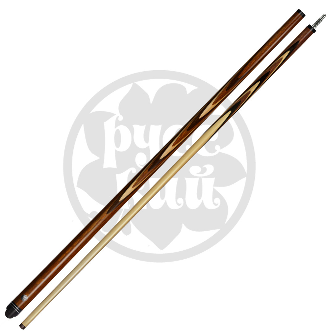 Кий «РУССКИЙ» - правильный кий, которому можно доверить свою игру. Бренд «РУССКИЙ» уже более 8 лет на рынке, за этот срок он собрал массу положительных откликов не только от покупателей-любителей, но и профессиональных именитых спортсменов! Постоянно расширяя линейку и улучшая качество своей продукции, сегодня мы представляем обновленные модели, соответствующие «золотому стандарту» киестроения! Запиленные новым способом кии «РУССКИЙ» обладают высокими пружинящими свойствами, одновременно плотные и стабильные, они имеют идеальную геометрию. В киях «РУССКИЙ» запил стал тоньше и длиннее, увеличенные лепестки придают большую жесткость кию и уменьшают вибрацию при ударе. Такой длинный запил сложен в реализации, зато обеспечивает хорошую плотность игровому инструменту. Длинна запила в среднем у склеенной заготовки составляет 33 см, а в готовом изделии 26 см. Запилы цельные, не склеенные, что тоже работает на повышение плотности и стабильности кия. Тонкие заготовки без склейки из разноцветных пород дерева собираются четко один к одному, образуя ажурный рисунок. Эффектные узоры не только придают изящный вид, но и совершенствуют игровые характеристики кия. Новая структура кия абсолютно монолитна и приближена к естественной структуре дерева. В изготовлении шафта киев используется только высококачественный 4-х сторонний граб. Это жесткое по структуре дерево, идеально подходящее для ударной части кия по своим физическим свойствам. От шафта зависит качество игры, здесь аккумулируется энергия, позволяющая при ударе «выстрелить» шар. Геометрия шафта кия «РУССКИЙ» кроме идеальной прямолинейности имеет определенную заданную жесткость. Здесь соблюден важный баланс между «жесткостью» и «эластичностью». В киях «РУССКИЙ» обновлены замки, сейчас они сделаны из двух видов металла, что способствует меньшему износу и большему сроку службы изделия. Разные металлы используются намеренно, разность в твердости обусловлена технической особенностью киестроения. Надежный замок гарантирует прочное соединение ударного наконечника и шафта, плотное соединение в месте стыка, обеспечивая идеальную скрутку и монолитность инструмента при игре. Финишная обработка этих киев тоже вобрала в себя все самые лучшие традиции. «РУССКИЙ» полируется особым способом и специальным составом, который наносится в несколько этапов и слоев. Поверхность дорабатывается до зеркального блеска, при этом кий не скользит в руке. Покрытие кия прочно и долговечно, а кий надежно защищен. Все модели кия «РУССКИЙ» проходят строгий технологический контроль на всех стадиях изготовления, ручная доводка каждого кия высокопрофессиональными мастерами обеспечивает неизменно высокие игровые качества профессионального уровня. Кии «РУССКИЙ» - кии для РУССКОГО бильярда, сделанные в лучших традициях РУССКИХ мастеров!