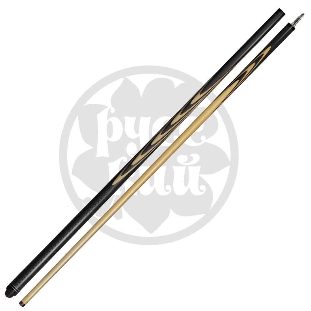 Особого внимания заслуживает турняк: его поверхность украшает филигранная гравировка, стилизованная под драконью чешую. Этот визуальный ритм не просто украшает инструмент — он превращает его в произведение искусства, где каждая деталь дышит совершенством. В свете софитов игра света на фактурной поверхности оживает, подчеркивая безупречный вкус своего владельца. Это не просто кий, это личный талисман, закованный в древесину и металл.