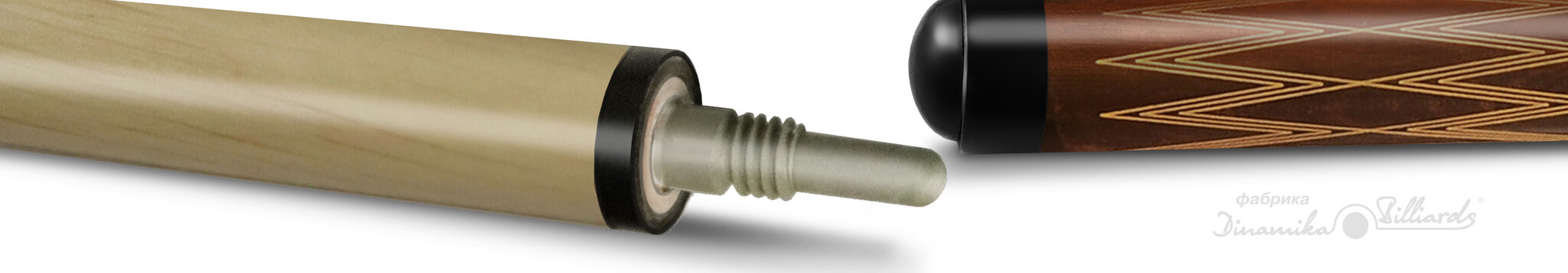 Для изготовления шафта практически во всех моделях бильярдных киев используется только высококачественный граб. Это жесткое по структуре и в то же время эластичное дерево идеальным образом подходит для изготовления данной части инструмента. Материалы, используемые для турняков, довольно разнообразны. В отделке дорогих моделей применяются ценные породы дерева – палисандр, венге и эбен. Для серийных моделей используются такие классические сорта как амарант, падук, лайсвуд, ятоба, «черный граб». В двусоставных киях установлены специальные замки из прочного полимерного материала – собственная разработка Фабрики. Соединяя турняк и шафт, эта деталь обеспечивает идеальную скрутку, а также участвует в процессе замедления энергии, гася колебания, идущие в тыльную часть турняка, где уже находится груз. Использование цельного лепестка без склейки в построении кия обеспечивает стабильность, прочность, устойчивость изделия к искривлению.