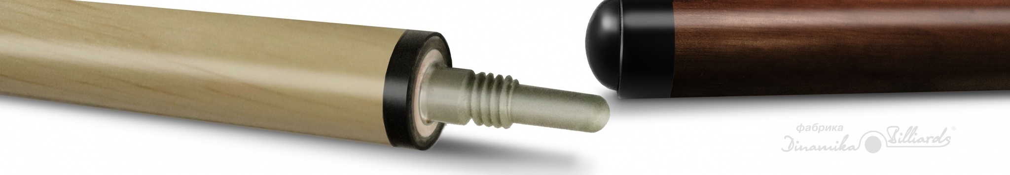 Для изготовления шафта практически во всех моделях бильярдных киев используется только высококачественный граб. Это жесткое по структуре и в то же время эластичное дерево идеальным образом подходит для изготовления данной части инструмента. Материалы, используемые для турняков, довольно разнообразны. В отделке дорогих моделей применяются ценные породы дерева – палисандр, венге и эбен. Для серийных моделей используются такие классические сорта как амарант, падук, лайсвуд, ятоба, «черный граб». В двусоставных киях установлены специальные замки из прочного полимерного материала – собственная разработка Фабрики. Соединяя турняк и шафт, эта деталь обеспечивает идеальную скрутку, а также участвует в процессе замедления энергии, гася колебания, идущие в тыльную часть турняка, где уже находится груз. Использование цельного лепестка без склейки в построении кия обеспечивает стабильность, прочность, устойчивость изделия к искривлению.