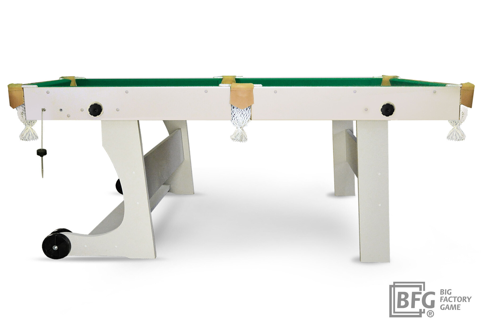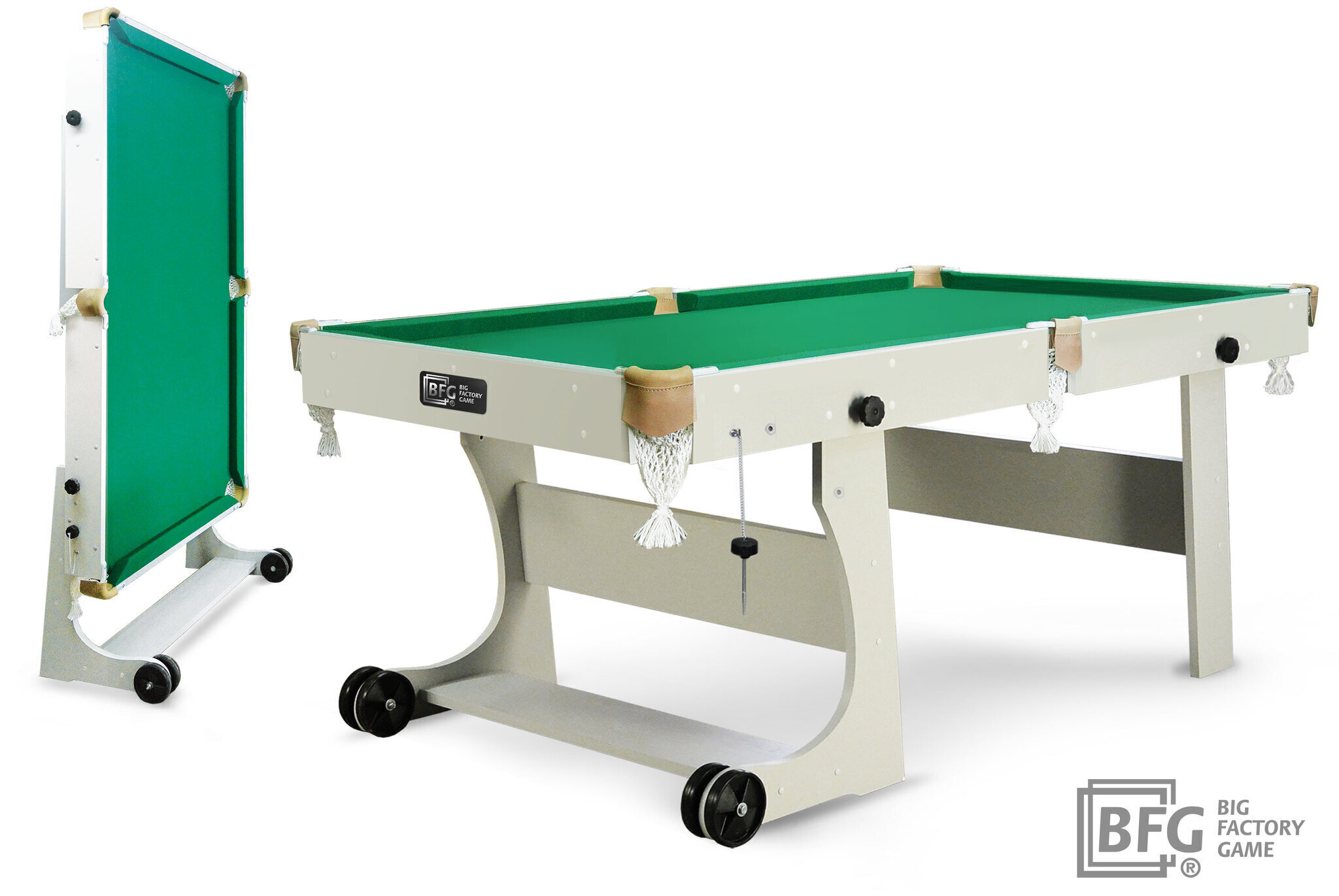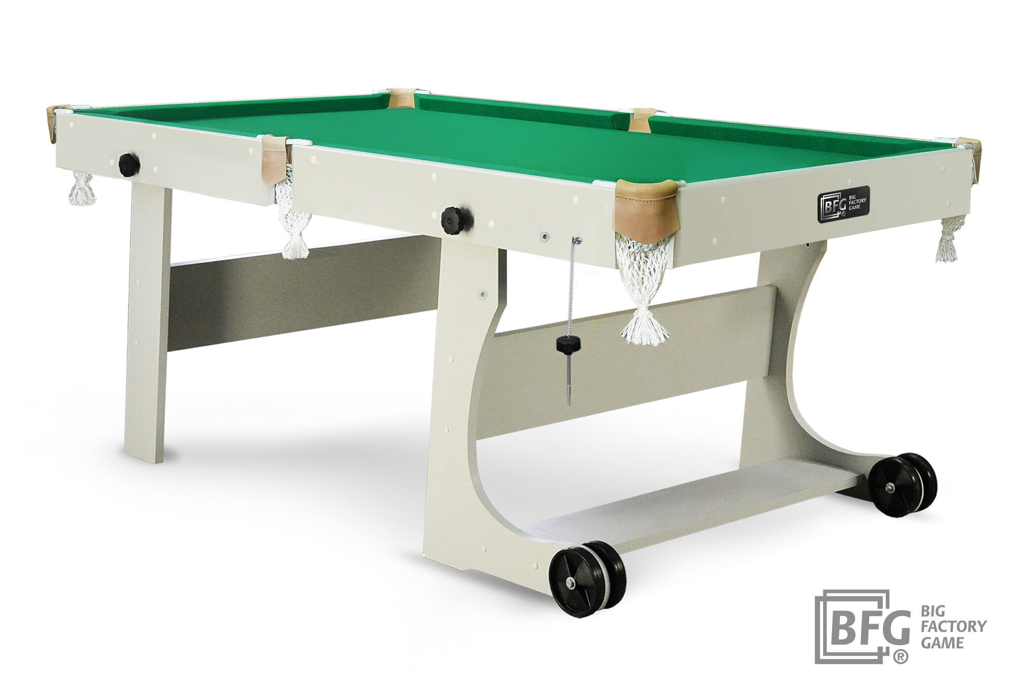 Привлекательной особенностью модели является удобный механизм складывания, позволяющий без особых усилий быстро сложить / разложить бильярдный стол. Благодаря сдвоенным колесам стол удобно перемещать в отведенное место на время хранения. В небольшой квартире Compact Light не займет много пространства, его хранение оптимально для небольших помещений.