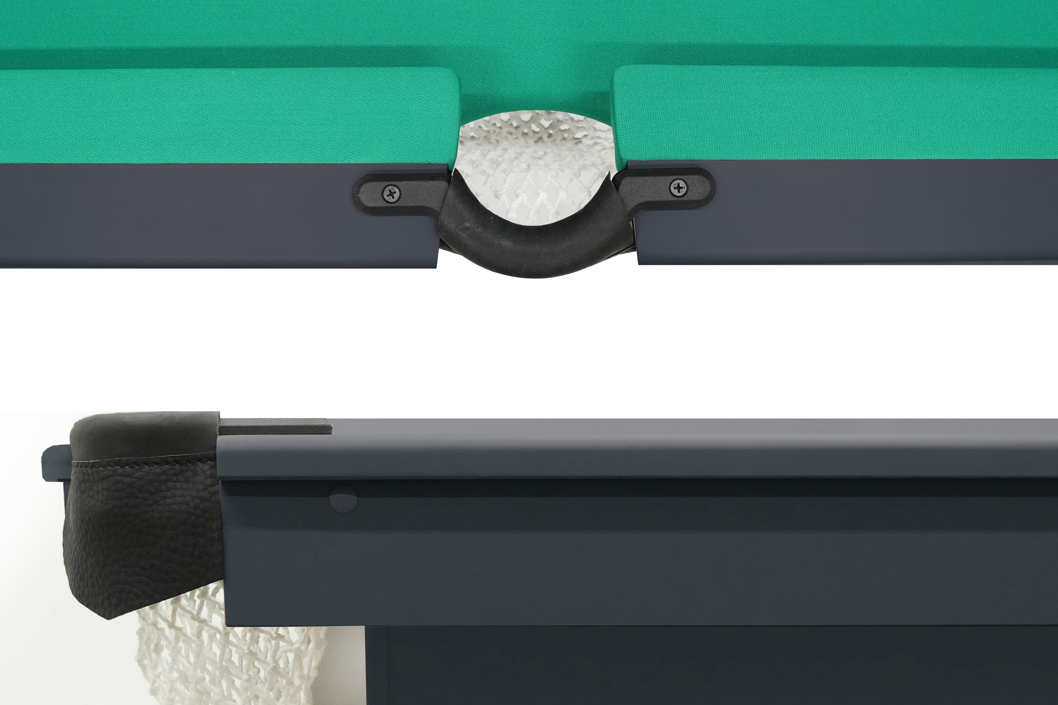 Стол комплектуется резиновым профилем Start Standard для предсказуемого отскока, износостойким сукном Manchester и кожаной пелериной. Силуминовые скобы и хлопковые сетки луз дополняют комплектацию.