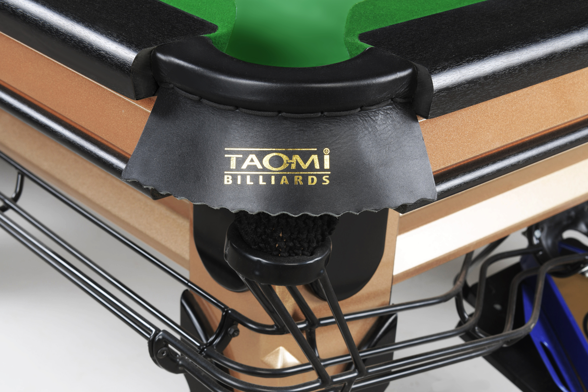 Китайский пул отличается особой эстетикой и стилем. Игровые столы выделяются изысканным дизайном и высоким качеством, делая игру не только захватывающей, но и эстетически приятной. Стол TAO-MI Model 1 (К5) выполнен в сочетании золотистого цвета и черных элементов, придающих ему изысканный и дорогой внешний вид.