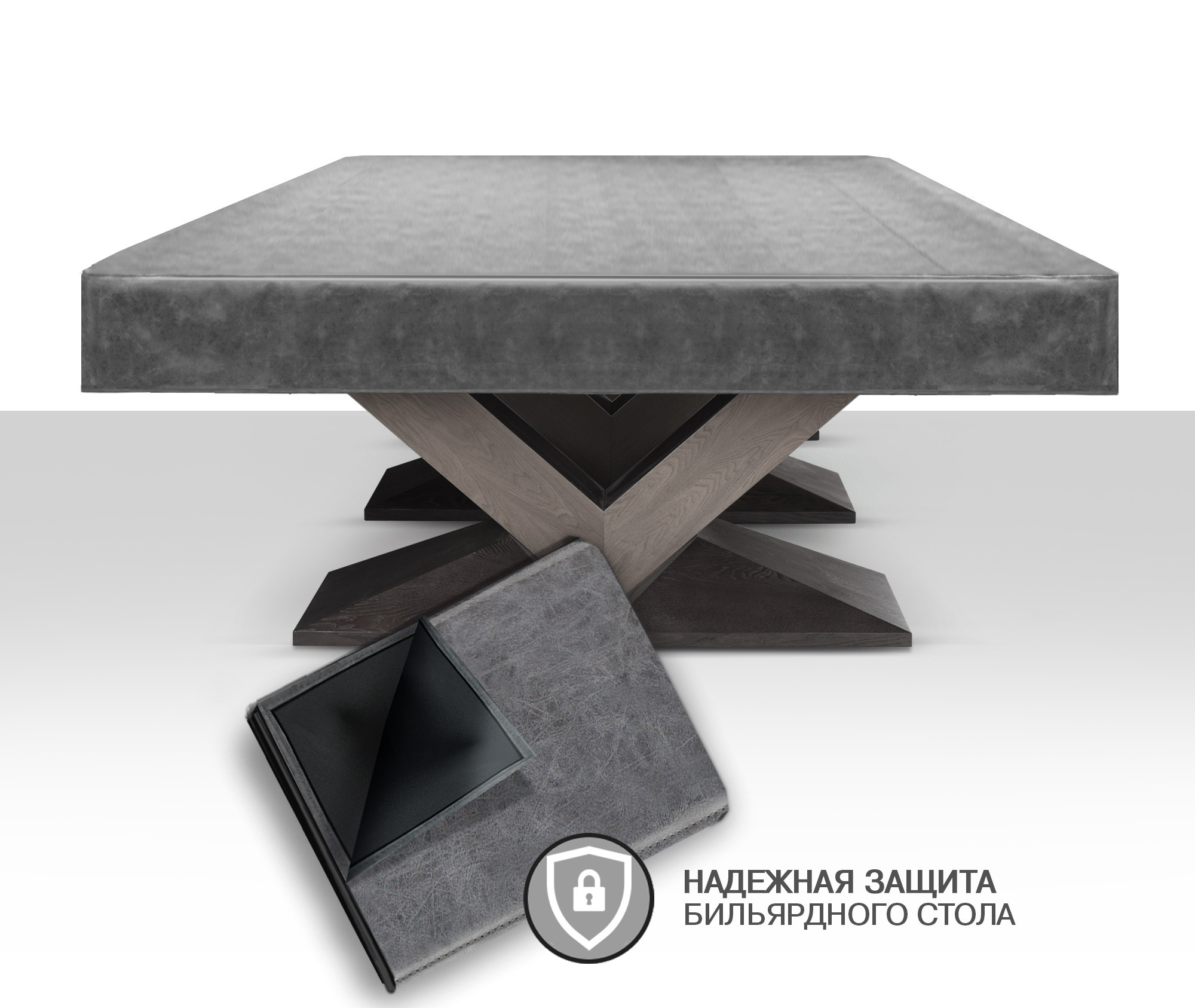 Чехол для бильярдных столов из плотной экокожи высокого качества обеспечивает надежную защиту от пыли, влаги, солнечного света и случайных царапин в перерывах между играми. Благодаря этому чехлу сукно не выгорает на солнце, и необходимость частой чистки поверхности стола от пыли значительно уменьшается. Это позволяет сукну сохранять свои свойства на более длительный срок. Чехол представляет собой идеальное сочетание стиля и функциональности. Специально разработанный для бильярдного стола Victory чехол обеспечивает идеальную защиту поверхности, надежно закрывая борта и лузы. Также одним из главных достоинств данного чехла является его стильный и элегантный дизайн. Он способен подчеркнуть изысканный вкус владельца, добавляя нотку утонченности в обстановку. Чехлы представлены в двух классических цветах: бежевый и серый. Это универсальные цвета, которые легко впишутся в любой стиль интерьера. Такой чехол станет гармоничным дополнением к интерьеру любой бильярдной комнаты, создавая атмосферу уюта и роскоши. Материал чехла не требует особого ухода. Достаточно периодически аккуратно очищать от пыли влажной тканью, что делает его использование еще более удобным. Чехол станет незаменимым аксессуаром для любого владельца бильярдного стола, обеспечивая не только защиту, но и добавляя эстетическую привлекательность вашему игровому пространству.