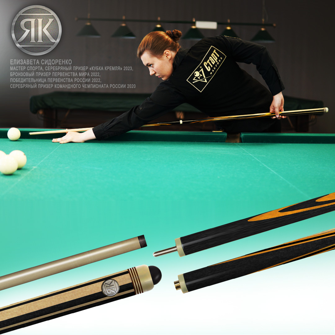 Кий Якубович Турмалин - двусоставный кий ручной работы для игры в русскую пирамиду. 9 ювелирных запилов выполнены из граба черного, белого и желтого цвета. Сочетание цветного граба и изящных ламелей в узоре кия придает необыкновенную привлекательность изделию. Эксклюзивность данной модели заключается и в редком сочетании материалов. Подпятник кия Турмалин выполнен из фенол альдегидной смолы со вставками из текстолита. Такая комбинация не только придает уникальности внешнему виду кия, но и обеспечивает прочность и стабильность инструмента. В комплектацию кия входит оригинальная наклейка TAO-MI, которая производится вручную из отборной 100#37; кожи буйвола с использованием только натуральных и безвредных материалов. В производстве TAO-MI применяется специальный высокотехнологичный процесс склеивания слоев, который делает структуру наклейки максимально однородной. Новый тип замка кия Турмалин обеспечивает идеально плотную скрутку шафта и турняка. Карбоновая вставка в области скрутки также задает монолитность двусоставному кию. А лаковое покрытие не только защищает древесину от изнашивания, но и придает поверхности кия элегантный отблеск. Кий уникален тем, что создается Мастером высокого класса на оснащенной производственной базе Фабрики «Старт». Кии Якубович объединяют ручную работу и передовые технологии бильярдного производства, что в купе дает красивое авторское изделие высоких игровых характеристик, которое всегда есть в наличии для наших покупателей. Граб: Граб наиболее широко распространен в Европе, Малой Азии и Иране. Древесина блестящая, тяжелая, вязкая. Плотность 750 кг/м #40;куб#41;. Твердость по Бринеллю 3,5. Черный граб: Древесина граба твердая и очень прочная. Скрученные волокна древесины мешают механической обработке данной породы древесины.