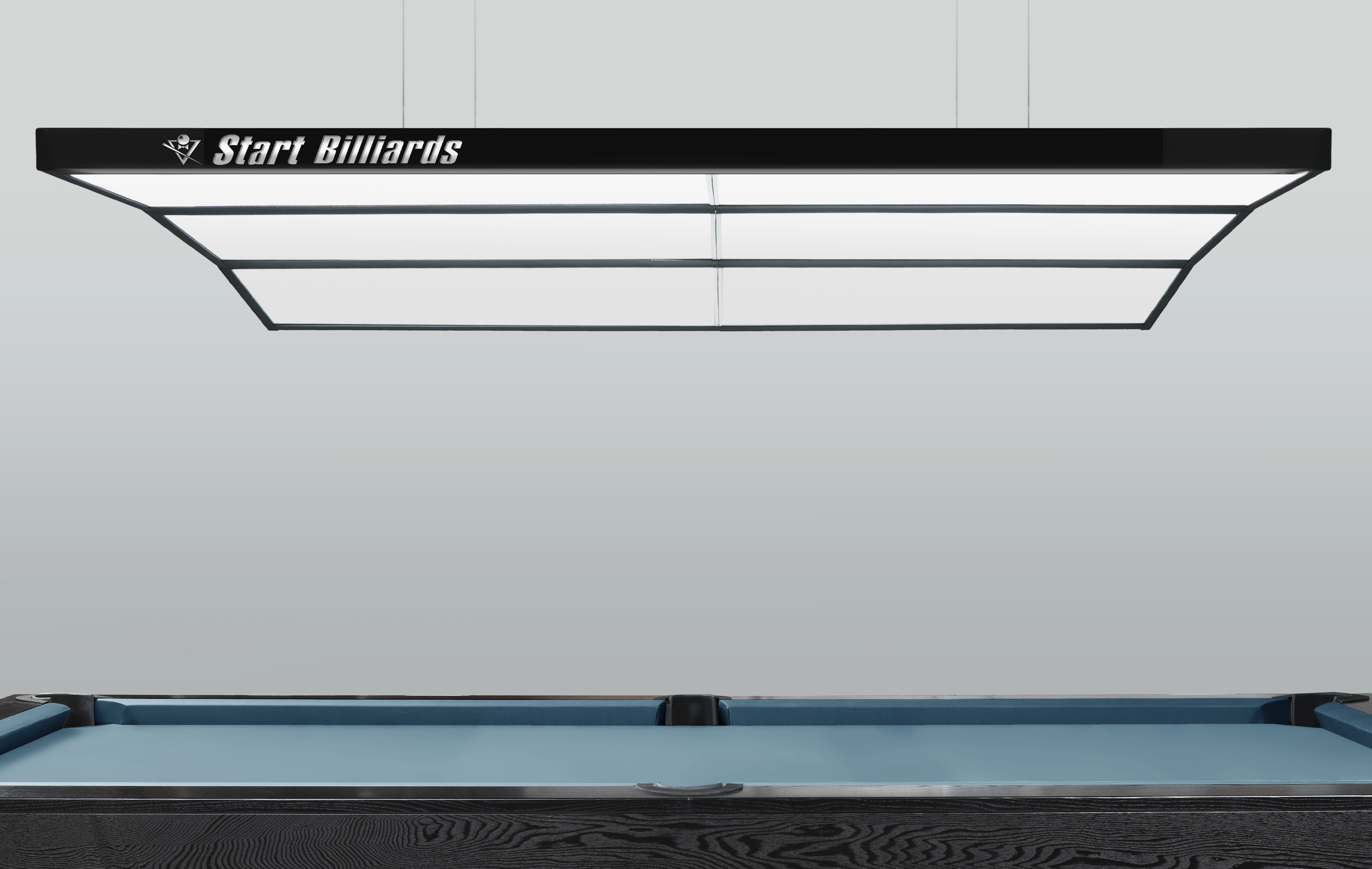 Лаконичный корпус с матовыми поверхностями и уникальной изогнутой геометрией органично впишется в интерьер от строгого классического клуба до стильного лофта. Оба длинных торца лампы украшает светящийся логотип Start Billiards — знак качества, одобренный спортсменами и экспертами.