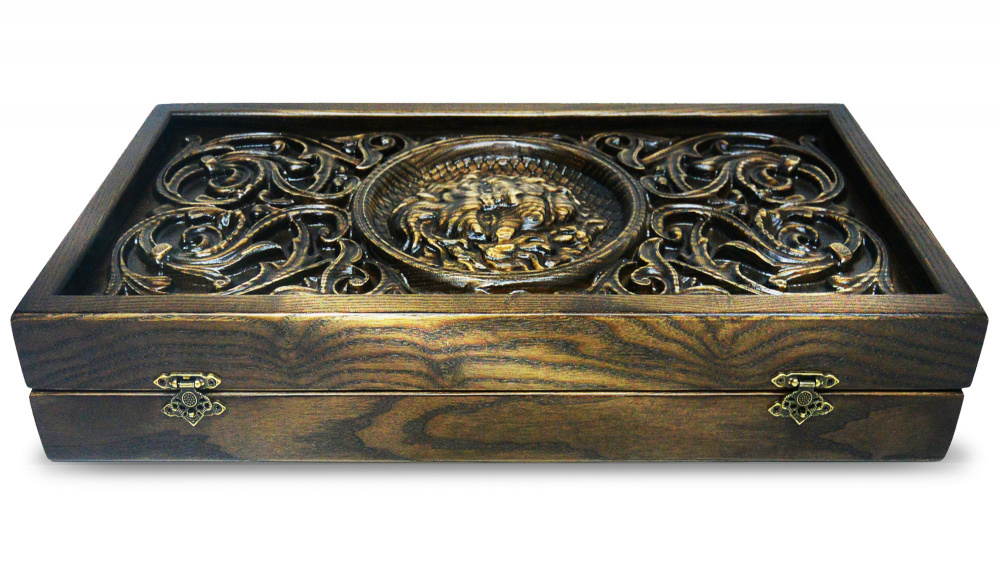 Нарды - шашки «Лео» изготовлены из массива ясеня, относятся к категории элитного товара и предназначены для настоящих ценителей не только игры, но иnbsp;nbsp;внешнего содержания. Модель созвучна с одноименной бильярдной коллекцией «Лео», при их создании использовался единый образ «царя зверей». Выполненная вручную резьба рельефа в виде льваnbsp;nbsp;придает царское величие. «Лео» соединяет в себе богатство стиля, роскошь резной отделки и «львиный» характер.