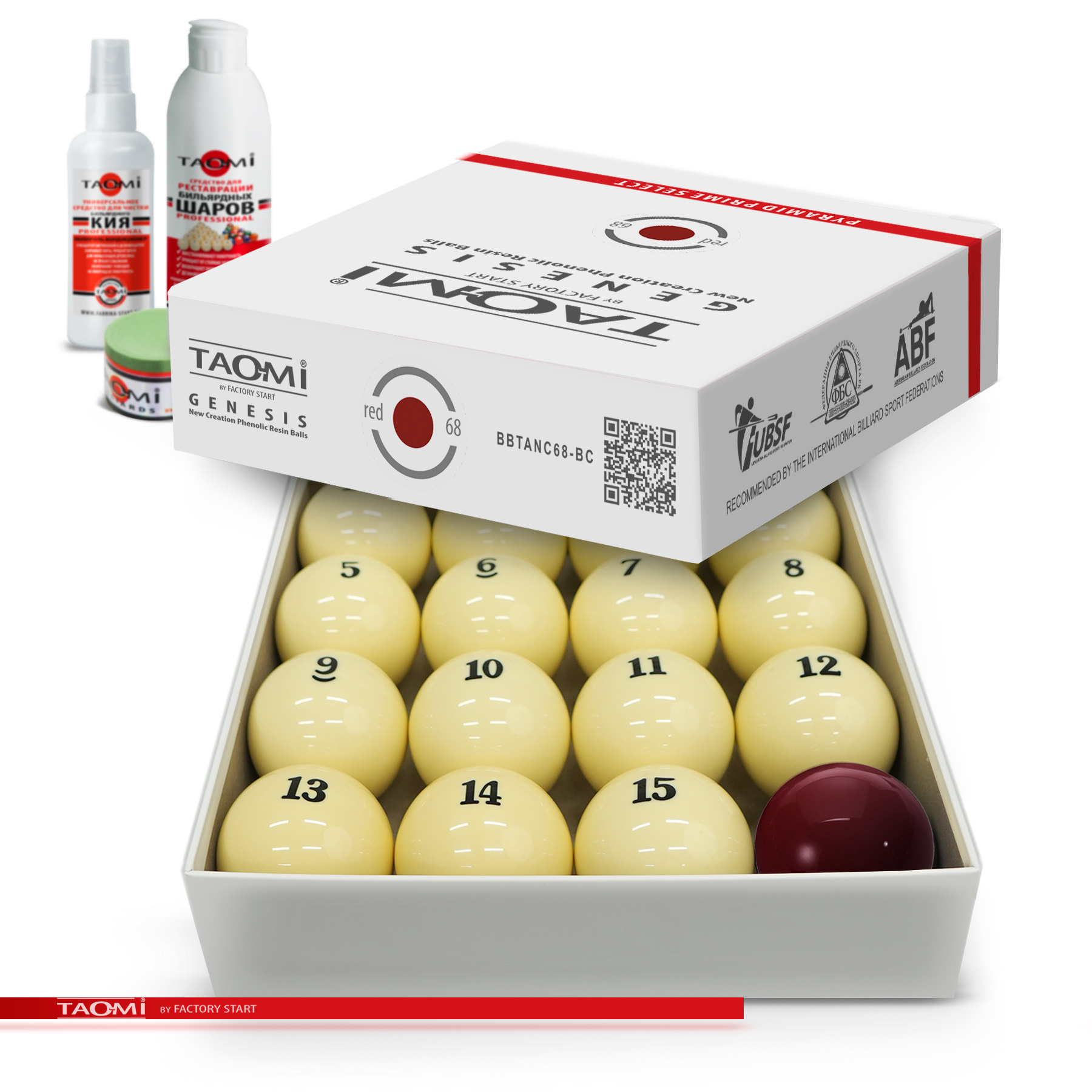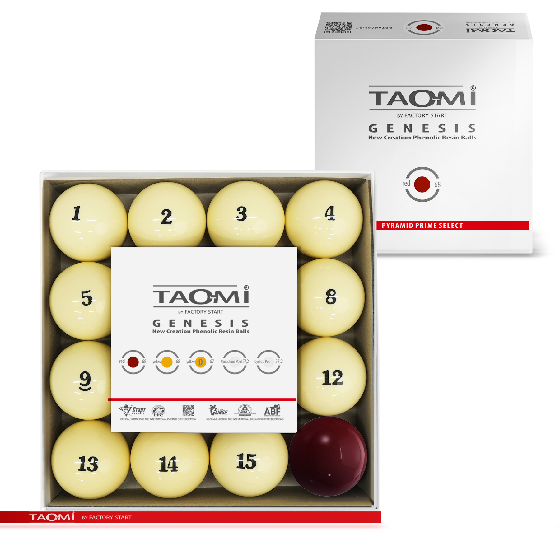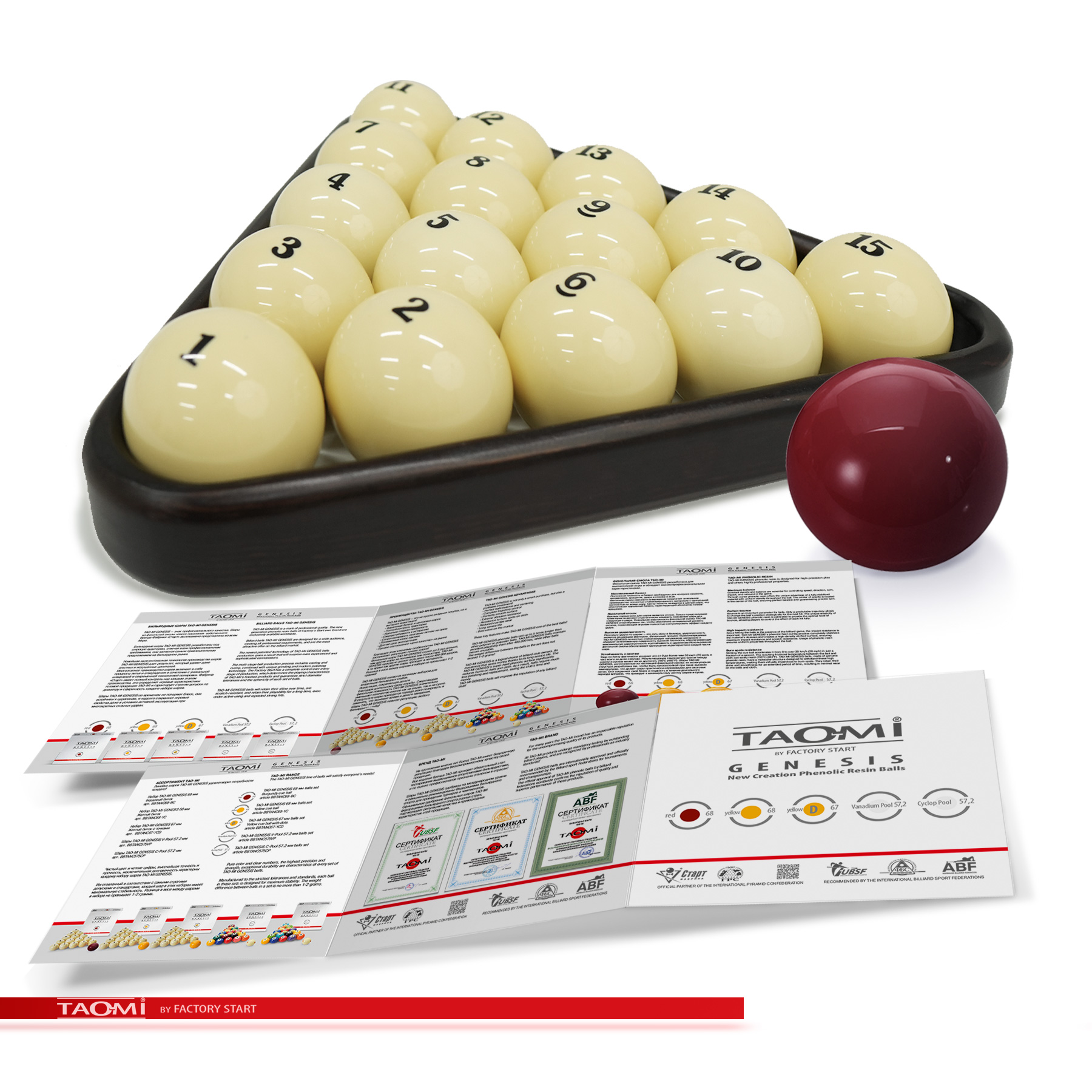 Шары TAO-MI GENESIS 68 мм – эталон точности и долговечности для игры в русскую пирамиду. Продукт нового поколения собственного бренда Фабрики «Старт», изготовленный по запатентованной технологии. Набор шаров из высококачественной фенольной смолы предлагает лучшее соотношение цены и качества для игроков любого уровня. Благодаря передовой технологии производства, включающей многоступенчатую полировку, каждый шар имеет строгий допуск по диаметру #40;68 мм#41;, единый стандарт веса #40;разброс 1-2 г#41; и идеальную сферичность для абсолютного контроля над игрой. Сверхтвёрдая поверхность устойчива к царапинам и ожоговым пятнам от ударов. Однородная плотность материала обеспечивает полный контроль над траекторией, скоростью и вращением. Уникальная эластичность смолы даёт оптимальный и предсказуемый отскок. Исключительная прочность шаровnbsp;nbsp;TAO-MI GENESIS 68 мм означает прямую экономию на обслуживании, полировке и замене, а также снижает износ кия за счет мягкого, но прочного взаимодействия с наклейкой. Выдающаяся долговечность, многократно превышающая срок службы шаров из полиэстера, делает шары выгодной инвестицией в репутацию заведения и игровой комфорт. Специально разработанная фенольная смола обеспечивает однородную плотность, высокую ударопрочность и термостойкость для стабильно высоких игровых характеристик на долгие годы. TAO-MI GENESIS 68 мм — это разумный выбор для тех, кто ценит надежность, точность и превосходное качество игры по доступной цене.