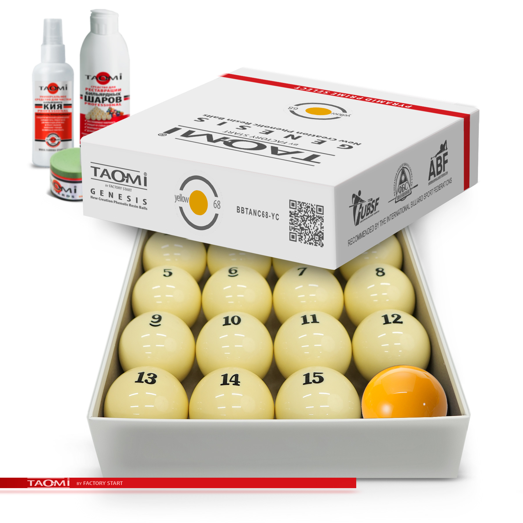 Шары TAO-MI GENESIS 68 мм – эталон точности и долговечности для игры в русскую пирамиду. Продукт нового поколения собственного бренда Фабрики «Старт», изготовленный по запатентованной технологии. Набор шаров из высококачественной фенольной смолы предлагает лучшее соотношение цены и качества для игроков любого уровня. Благодаря передовой технологии производства, включающей многоступенчатую полировку, каждый шар имеет строгий допуск по диаметру #40;68 мм#41;, единый стандарт веса #40;разброс 1-2 г#41; и идеальную сферичность для абсолютного контроля над игрой. Сверхтвёрдая поверхность устойчива к царапинам и ожоговым пятнам от ударов. Однородная плотность материала обеспечивает полный контроль над траекторией, скоростью и вращением. Уникальная эластичность смолы даёт оптимальный и предсказуемый отскок. Исключительная прочность шаровnbsp;nbsp;TAO-MI GENESIS 68 мм означает прямую экономию на обслуживании, полировке и замене, а также снижает износ кия за счет мягкого, но прочного взаимодействия с наклейкой. Выдающаяся долговечность, многократно превышающая срок службы шаров из полиэстера, делает шары выгодной инвестицией в репутацию заведения и игровой комфорт. Специально разработанная фенольная смола обеспечивает однородную плотность, высокую ударопрочность и термостойкость для стабильно высоких игровых характеристик на долгие годы. TAO-MI GENESIS 68 мм — это разумный выбор для тех, кто ценит надежность, точность и превосходное качество игры по доступной цене.