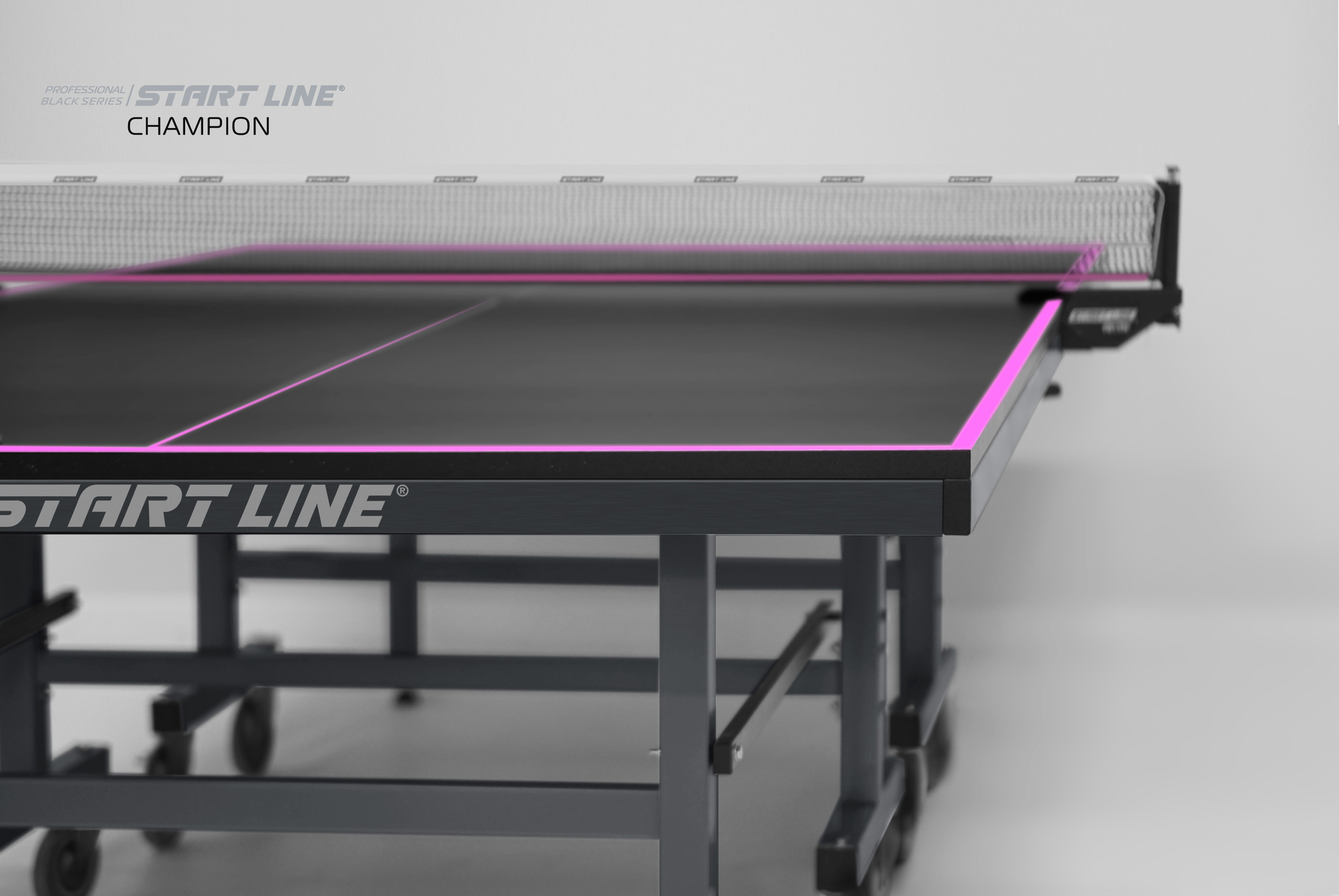 Теннисный стол Champion Black – это образец высоких стандартов и качества в мире настольного тенниса.nbsp;nbsp; Столы серии Champion – это первые российские теннисные столы, которые лицензированы и одобрены Международной Федерацией настольного тенниса #40;ITTF#41; для проведения соревнований высокого уровня. Столы Champion отвечают всем современным требованиям настольного тенниса и успешно зарекомендовали себя на многочисленных турнирах. Размер стола в рабочем положении: 274 см в длину, 152,5 см в ширину и 76 см в высоту, что соответствует стандарту ITTF. Черное основание и столешница с фиолетовой разметкой придают столу элегантный и современный вид, делая его идеальным выбором для оснащения спортивных клубов и собственного тренировочного пространства. Стол укомплектован столешницей из прочного материала ЛДСП толщиной 25 мм с многослойной, антибликовой покраской что обеспечивает предсказуемый контроль над ударами и высокий отскок мяча. Меламиновое покрытиеnbsp;nbsp;надежно защищает столешницу от появления трещин и сколов, а металлический кант 50x25 мм с полимерным покрытием и кромка из ПВХ 0,45 мм обеспечивают устойчивость и долговечность стола даже в условиях интенсивной эксплуатации. Обрезиненные колеса диаметром 125 мм на подшипниках гарантируют легкость перемещения. На каждой стороне стола установлено четыре колеса, два из которых оснащены тормозом, что гарантирует идеальную фиксацию и стабильность стола во время игры. Регулируемая высота боковых опор дает возможность адаптации стола к различным условиям, позволяя выставить идеальный уровень игрового поля даже на неровной поверхности. Механизм трансформации - собственная уникальная разработка Start Line.nbsp;nbsp;Сложить для хранения и разложить стол для игры без труда сможет один человек. Специальные фиксаторы позволяют надежно закрепить положение стола. Конструкцией предусмотрен режим одиночной игры PLAYBACK, который позволит тренироваться самостоятельно, отрабатывая навыки и точность ударов. Теннисный стол Champion Black – это идеальный выбор для профессиональных спортсменов,, стремящихся к высочайшим результатам и качеству.