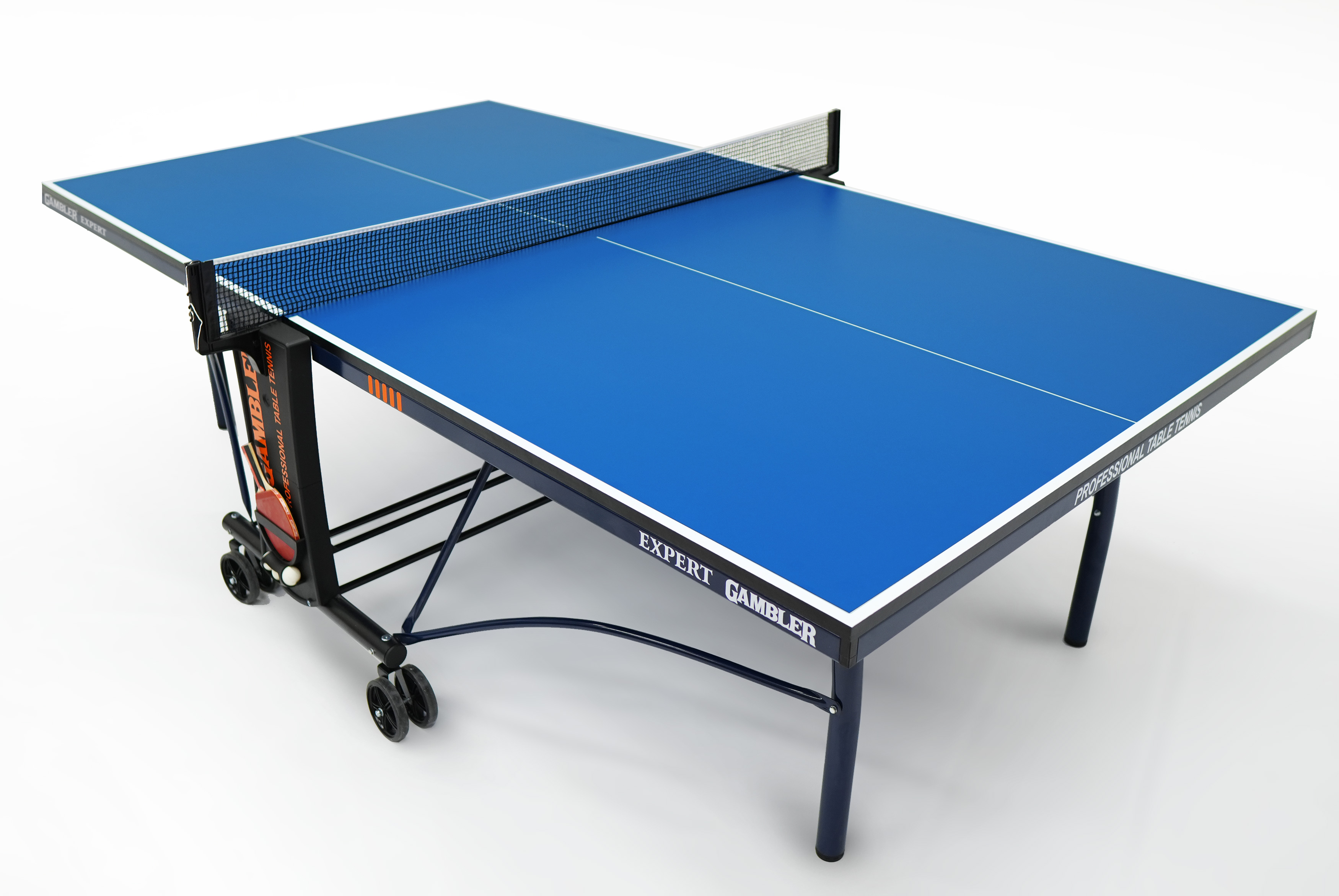 Стол укомплектован удобной и надежной встроенной сеткой, готовой к игре сразу после распаковки. Накладки на боковых поверхностях основания стола позволяют разместить необходимые для игры аксессуары.