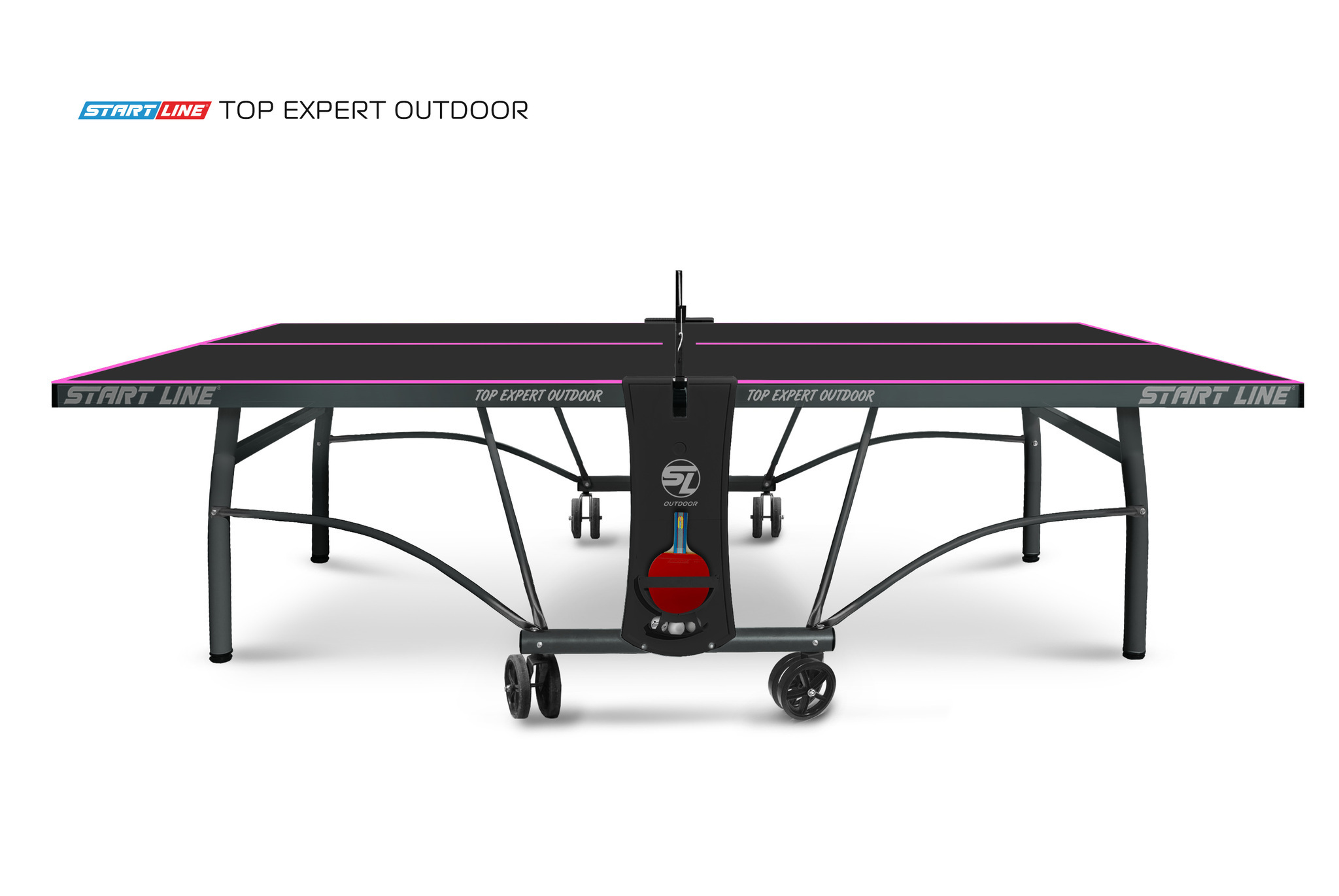 TOP Expert 6 Всепогодный Black — стильная разработка конструкторского бюро Start Line выполнена с вниманием к мельчайшим деталям. TOP Expert 6 Всепогодный Black создан на основе популярной модели TOP Expert 6 Всепогодный, которая относится к любительскому уровню теннисных столов для игры на улице. Современные методы построения теннисного стола, позволили усовершенствовать дизайн. Обновленная модель TOP Expert 6 Всепогодный Black отличается уникальным сочетанием стильного черного цвета столешницы и контрастной фиолетовой разметки. Размер стола в рабочем положении: 274 см в длину, 152,5 см в ширину и 76 см в высоту, что соответствует стандарту ITTF. Стол укомплектован столешницей из прочной алюминиевой композитной панели. Толщина игрового поля 6 мм обеспечивает отличные показатели точности и контроля над мячом. Металлический кант шириной 60 мм защищает игровое поле от повреждений и продлевает срок службы теннисного стола. Поля столешницы обработаны фрезером по периметру, что предотвращает риск получения травм, гарантируя безопасность игроков. Алюминиевый слой столешницы из АКП 6 мм имеет толщину 0,3 мм. В отличие от конкурентов, у которых толщина алюминиевого слоя составляет всего 0,21 мм, Start Line гарантирует надежную защиту теннисных столов от коррозии и механических повреждений. Модель TOP Expert 6 Всепогодный Black оснащена двойными поворотными обрезиненными колесами диаметром 125 мм, что гарантируют плавное перемещение стола. Регулируемая высота боковых опор позволяет выставить идеальный уровень игрового поля даже на неровной поверхности. Механизм трансформации - собственная уникальная разработка Start Line, которая позволяет одному человеку легко сложить стол для хранения и быстро привести его в рабочее положение. Специальные фиксаторы надежно закрепляют положение стола как в разложенном, так и в сложенном виде. Конструкцией предусмотрен вариант трансформации стола для одиночной игры. Модель TOP Expert 6 Всепогодный Black укомплектована удобным держателем для ракеток и мячей с покрытием Soft-touch и встроенной сеткой, не требующей демонтажа при складывании. Начать игру можно в любое время, ведь все необходимое оборудование всегда под рукой.