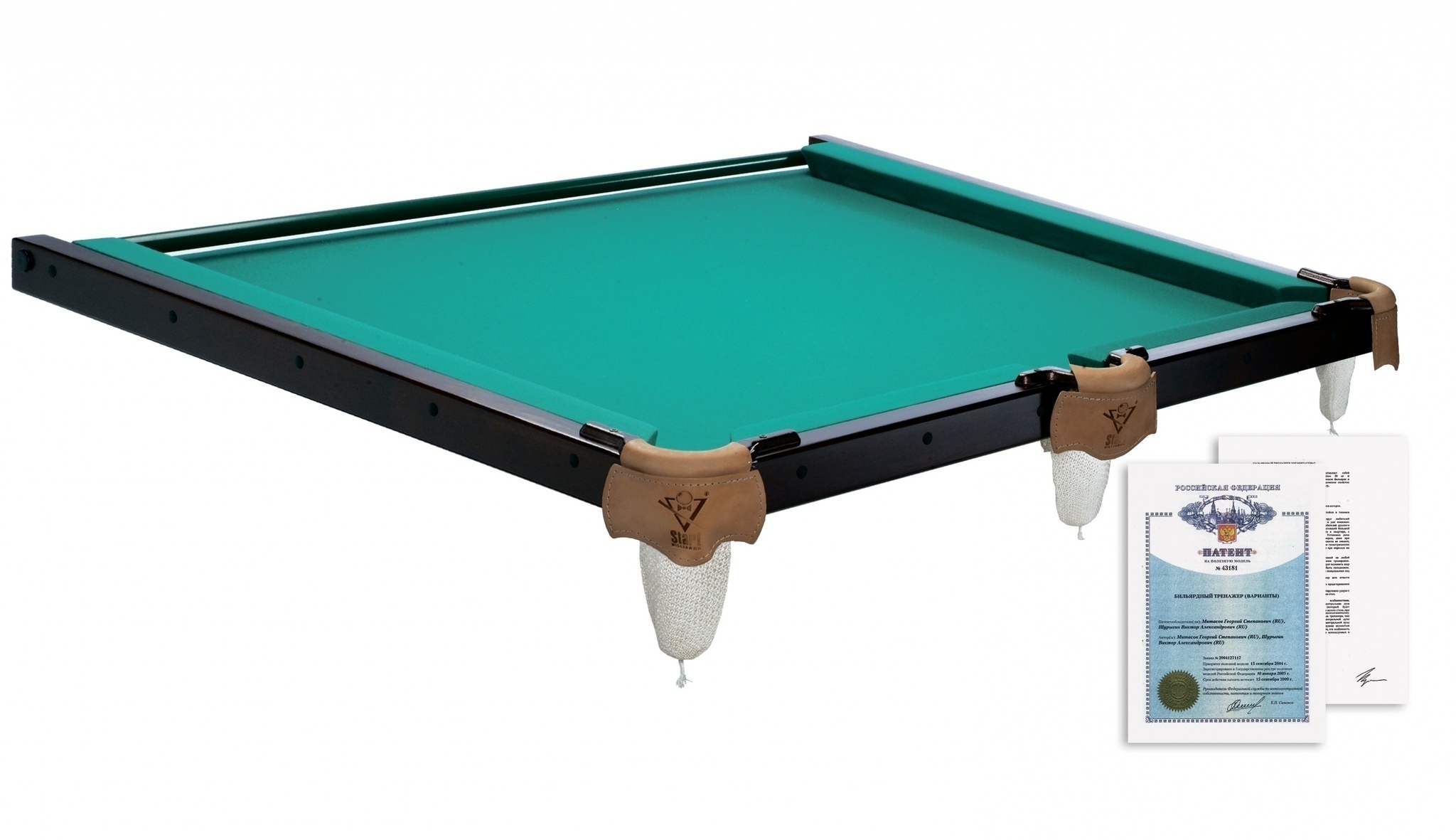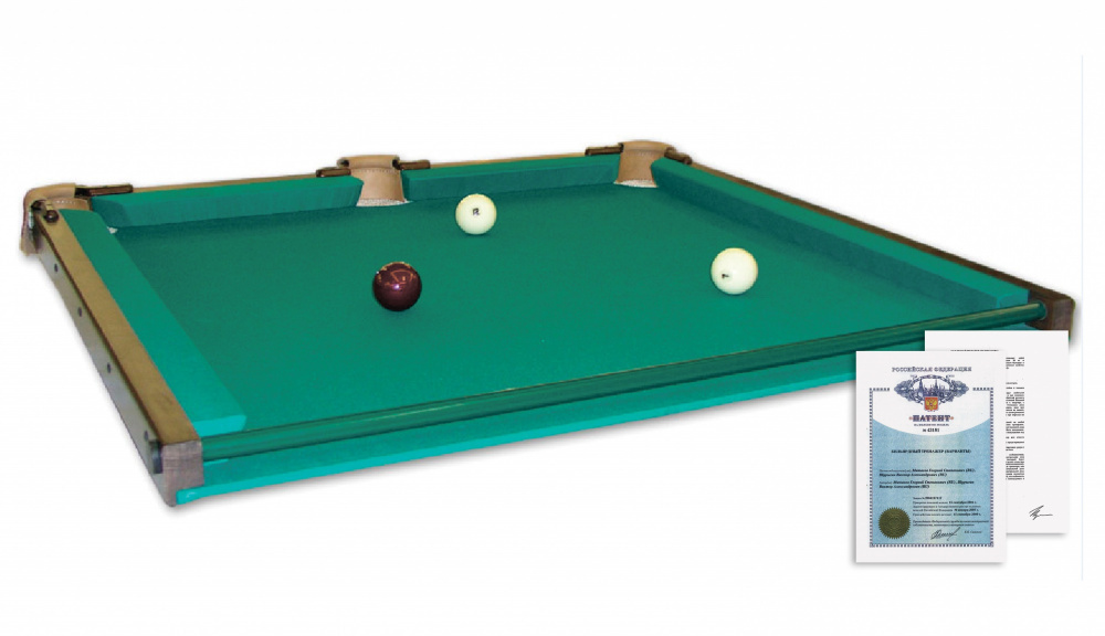 Тренажер представляет собой игровую поверхность, оснащенную настоящими бильярдными лузами, амортизаторами и сукном. Компактные размеры (1230х1115 мм) позволяет устанавливать его на обычный письменный стол.