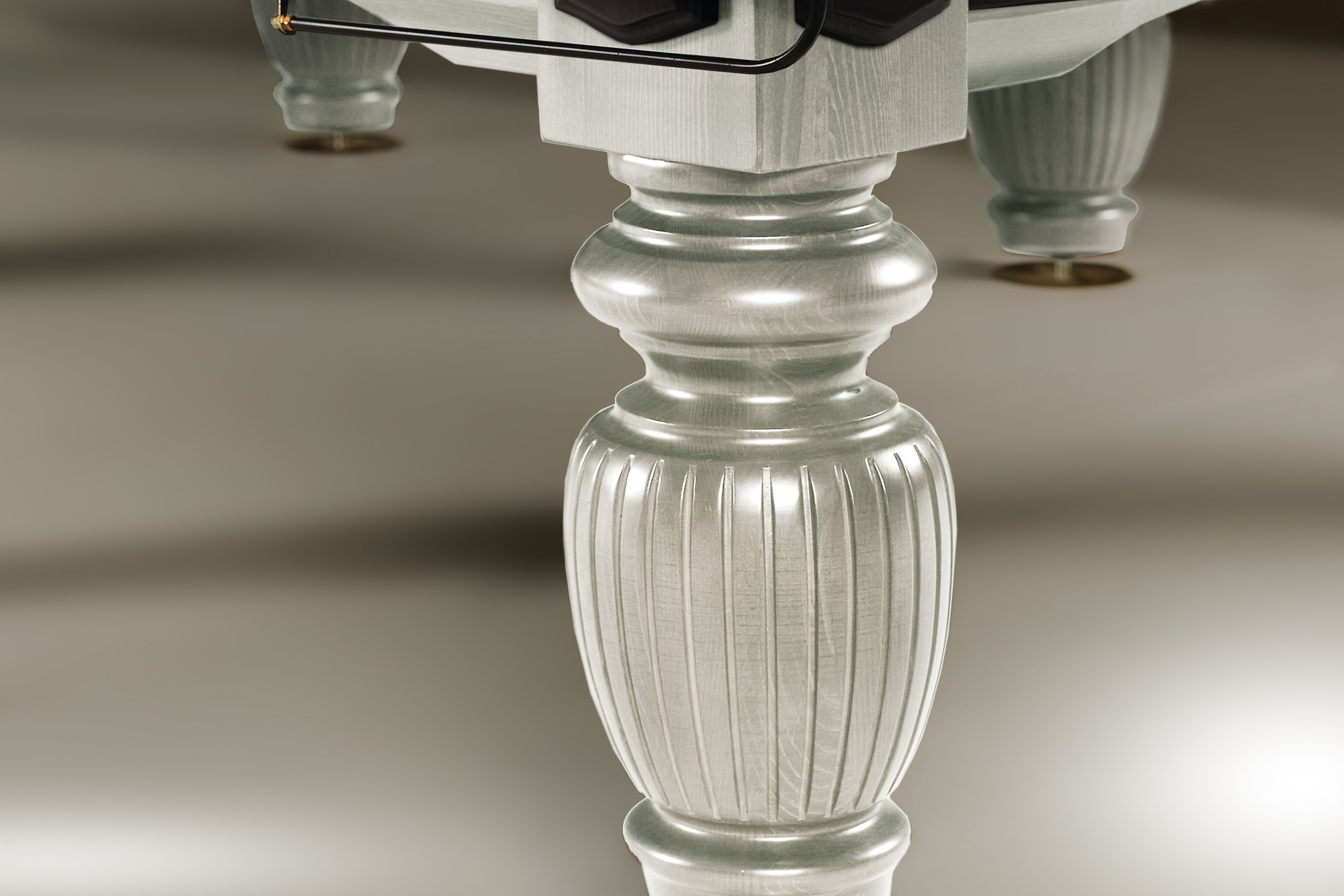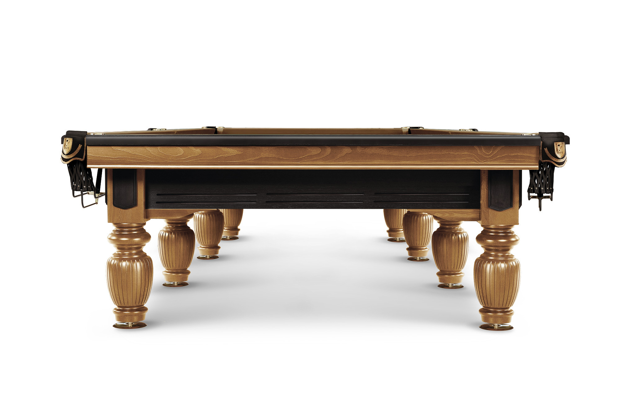 В основу этой модели легли передовые технологические разработки, успешно реализованные в производстве столов профессиональной серии. «Версаль» выгодно отличается выкраской, построенной на контрасте, уравновешенным и стильным декором, общей гармонией форм. Шульцевское крепление ног обеспечивает столу высокую устойчивость. Система плавающих гаек в бортах с вертикальным креплением позволяет идеальным образом выставить борт по отношению к плите и максимально притянуть их друг к другу, превратив в единый монолит. Этот бильярдный стол займет достойное место как в специализированном клубе, так и в интерьере домашней бильярдной.